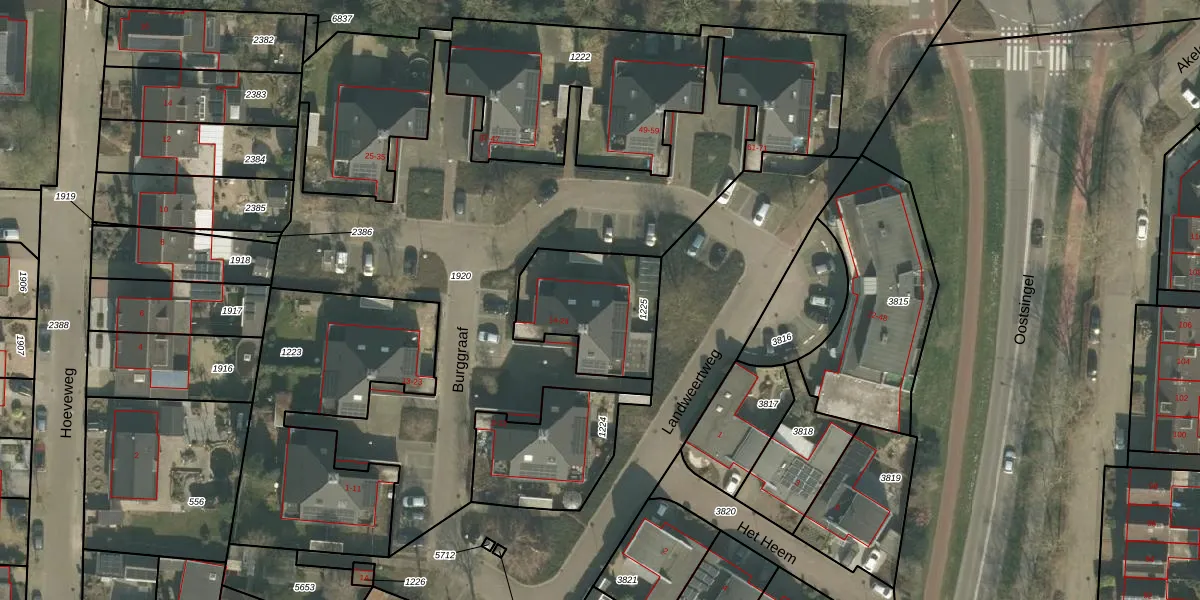 Het perceel waarop Burggraaf 20 staat heeft een oppervlakte van 410 m². Dit is een groot perceel. De perceeloppervlakte wordt geregistreerd door het Kadaster. Gedetailleerde informatie over de maten van dit perceel kunt u vinden in het rapport Kadastrale kaart met maatvoering van Burggraaf 20.