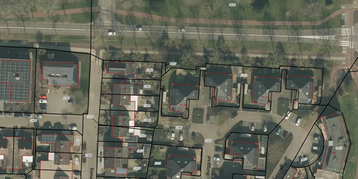 Het perceel waarop Burggraaf 31 staat heeft een oppervlakte van 1725 m². Dit is een zeer groot perceel. De perceeloppervlakte wordt geregistreerd door het Kadaster. Gedetailleerde informatie over de maten van dit perceel kunt u vinden in het rapport Kadastrale kaart met maatvoering van Burggraaf 31.