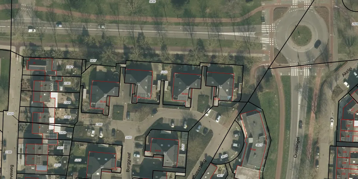 Het perceel waarop Burggraaf 51 staat heeft een oppervlakte van 1725 m². Dit is een zeer groot perceel. De perceeloppervlakte wordt geregistreerd door het Kadaster. Gedetailleerde informatie over de maten van dit perceel kunt u vinden in het rapport Kadastrale kaart met maatvoering van Burggraaf 51.