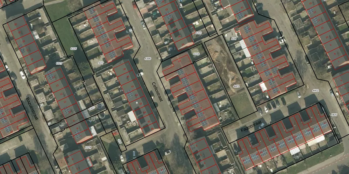 Het perceel waarop Cellostraat 12 staat heeft een oppervlakte van 5010 m². Dit is een zeer groot perceel. De perceeloppervlakte wordt geregistreerd door het Kadaster. Gedetailleerde informatie over de maten van dit perceel kunt u vinden in het rapport Kadastrale kaart met maatvoering van Cellostraat 12.