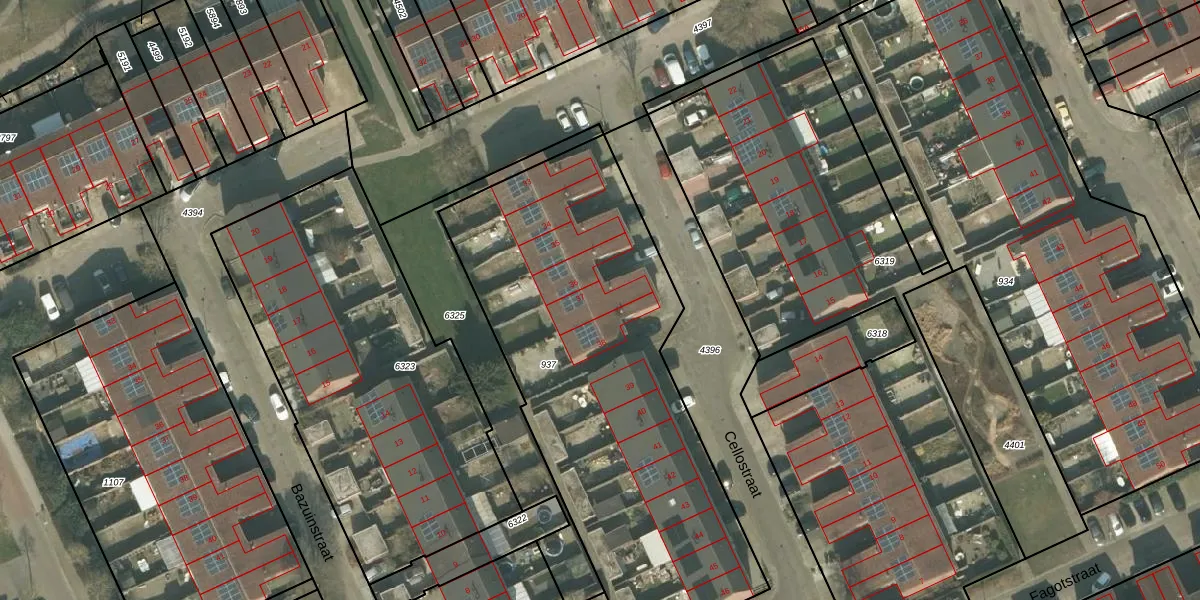 Het perceel waarop Cellostraat 37 staat heeft een oppervlakte van 2210 m². Dit is een zeer groot perceel. De perceeloppervlakte wordt geregistreerd door het Kadaster. Gedetailleerde informatie over de maten van dit perceel kunt u vinden in het rapport Kadastrale kaart met maatvoering van Cellostraat 37.