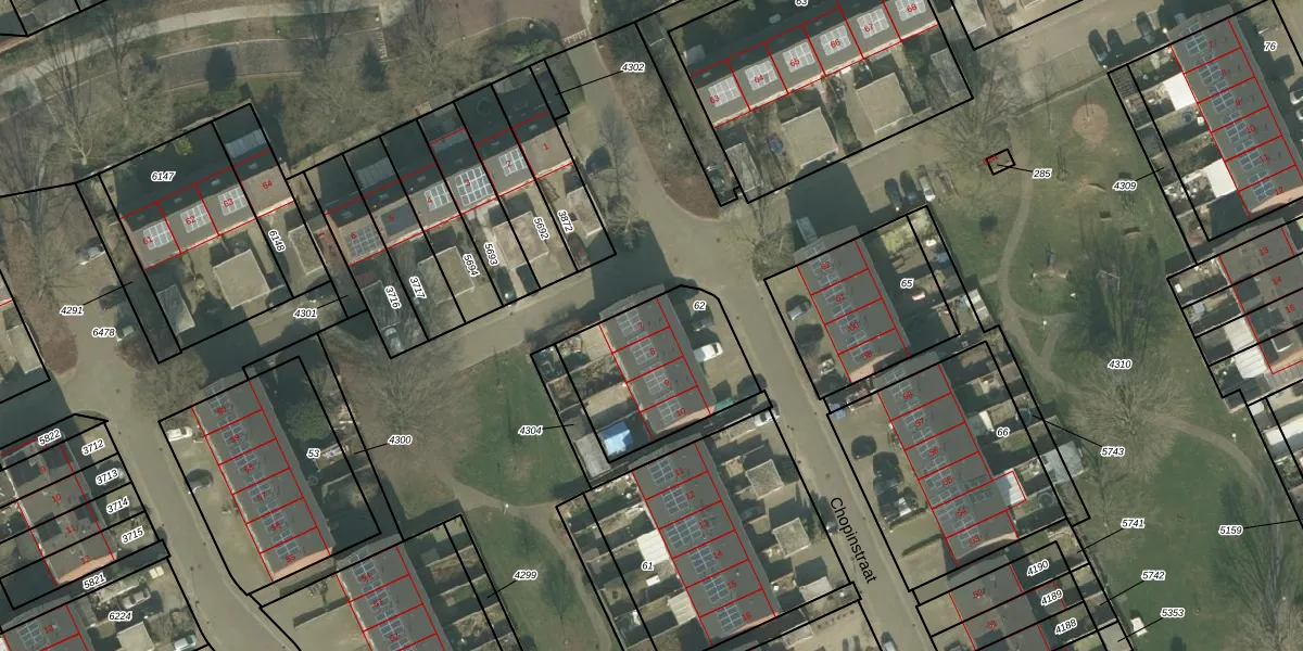 Het perceel waarop Chopinstraat 7 staat heeft een oppervlakte van 525 m². Dit is een groot perceel. De perceeloppervlakte wordt geregistreerd door het Kadaster. Gedetailleerde informatie over de maten van dit perceel kunt u vinden in het rapport Kadastrale kaart met maatvoering van Chopinstraat 7.