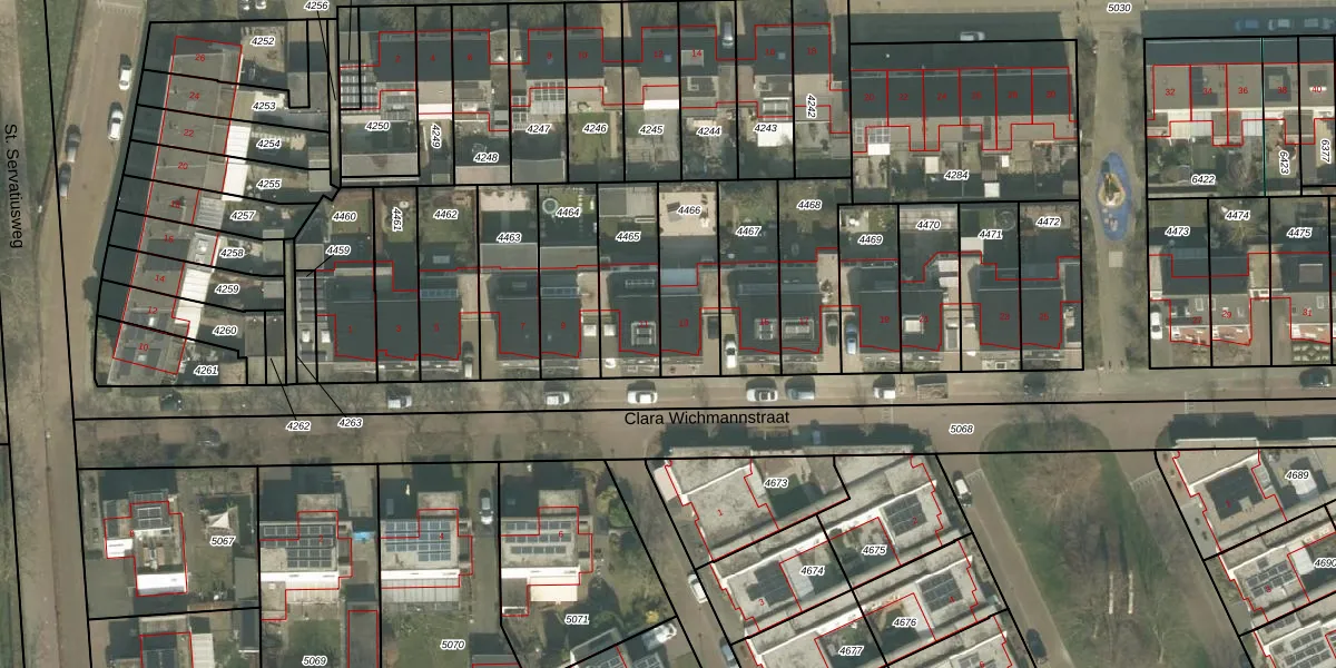 Gebruik de zoekbalk of klik op een perceel voor informatie over de adressen binnen dit perceel.