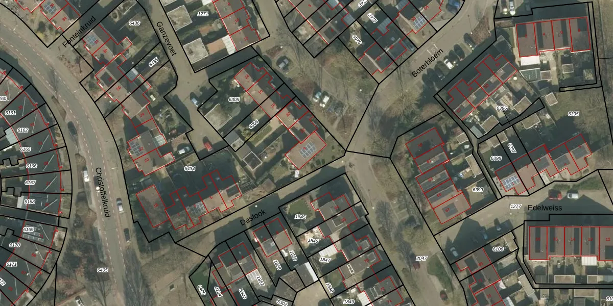 Het perceel waarop Daslook 9 staat heeft een oppervlakte van 2107 m². Dit is een zeer groot perceel. De perceeloppervlakte wordt geregistreerd door het Kadaster. Gedetailleerde informatie over de maten van dit perceel kunt u vinden in het rapport Kadastrale kaart met maatvoering van Daslook 9.