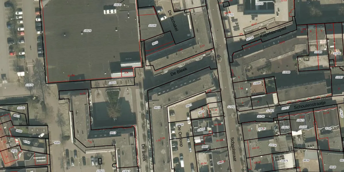 Het perceel waarop De Bleek 9 staat heeft een oppervlakte van 1075 m². Dit is een zeer groot perceel. De perceeloppervlakte wordt geregistreerd door het Kadaster. Gedetailleerde informatie over de maten van dit perceel kunt u vinden in het rapport Kadastrale kaart met maatvoering van De Bleek 9.