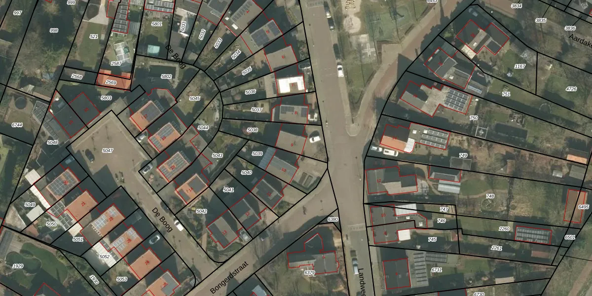 Het perceel waarop De Boog 9 staat heeft een oppervlakte van 298 m². Dit is een middelgroot perceel. De perceeloppervlakte wordt geregistreerd door het Kadaster. Gedetailleerde informatie over de maten van dit perceel kunt u vinden in het rapport Kadastrale kaart met maatvoering van De Boog 9.