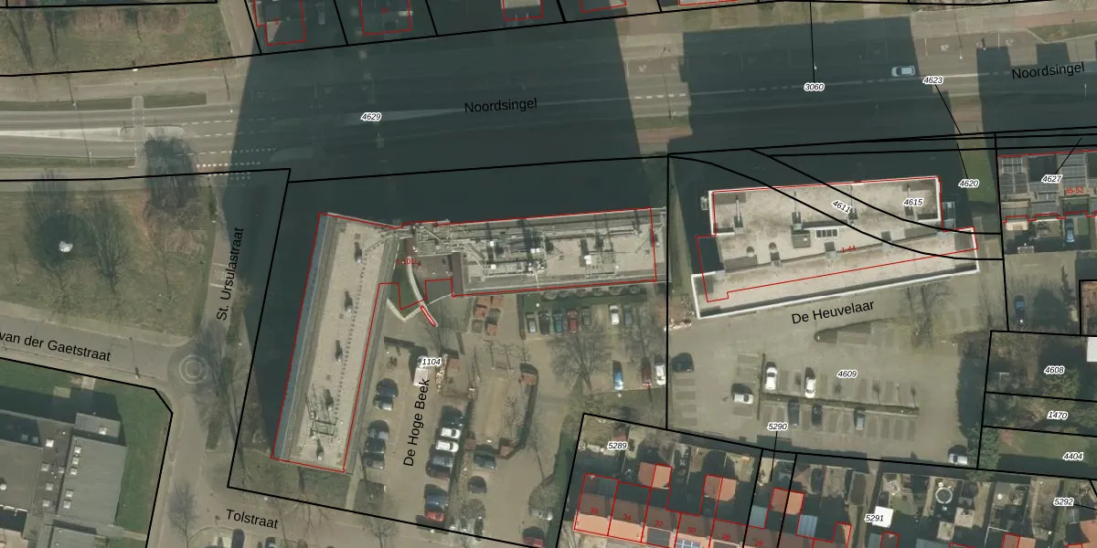 Het perceel waarop het adres ligt is VRY00-L-1104. De afkorting 'VRY00' staat voor kadastrale gemeente Venray. Het perceel is 4500 m² groot. Dat is kleiner dan de gemiddelde perceeloppervlakte in Venray, dat op 6024,5 m² ligt. Het grootste perceel in de kadastrale gemeente is 1,79 km². Het kleinste perceel heeft een oppervlakte van 0 m². Er zijn 100 adressen aanwezig op het perceel. De huidige grenzen van het perceel zijn digitaal in de Basisregistratie Kadaster (BRK) geregistreerd op 17-09-2008.