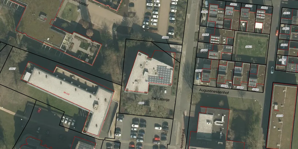 De Laterije 5 is gelegen op kadastraal perceel VRY00C9300. Deze kadastrale aanduiding is uniek en wordt gebruikt door het Kadaster om eigendomsrechten en andere zakelijke rechten vast te leggen. Het perceel maakt onderdeel uit van de kadastrale gemeente Venray.