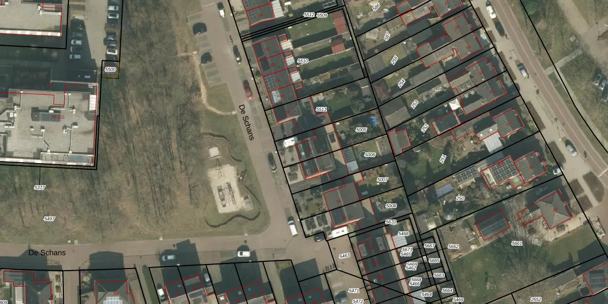 Het perceel waarop De Schans 30 staat heeft een oppervlakte van 327 m². Dit is een groot perceel. De perceeloppervlakte wordt geregistreerd door het Kadaster. Gedetailleerde informatie over de maten van dit perceel kunt u vinden in het rapport Kadastrale kaart met maatvoering van De Schans 30.