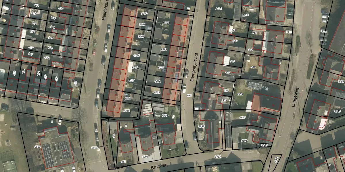 Gebruik de zoekbalk of klik op een perceel voor informatie over de adressen binnen dit perceel.