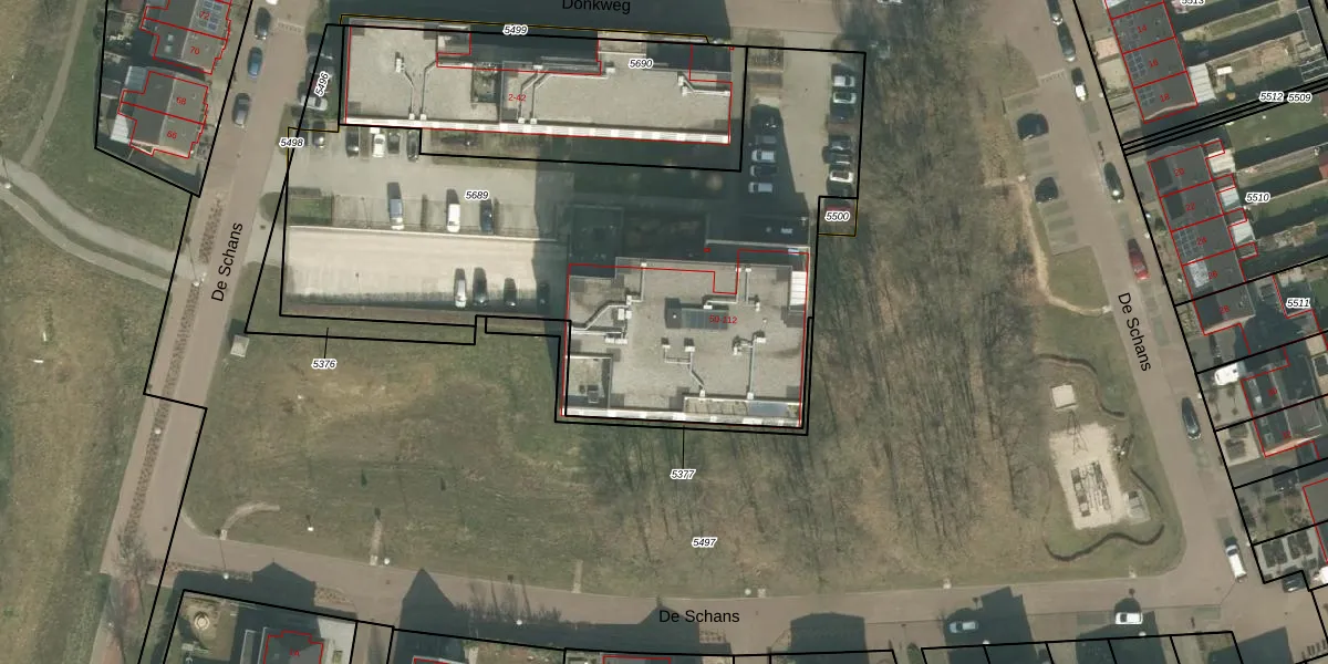 Donkweg 80 is gelegen op kadastraal perceel VRY00L5689. Deze kadastrale aanduiding is uniek en wordt gebruikt door het Kadaster om eigendomsrechten en andere zakelijke rechten vast te leggen. Het perceel maakt onderdeel uit van de kadastrale gemeente Venray.