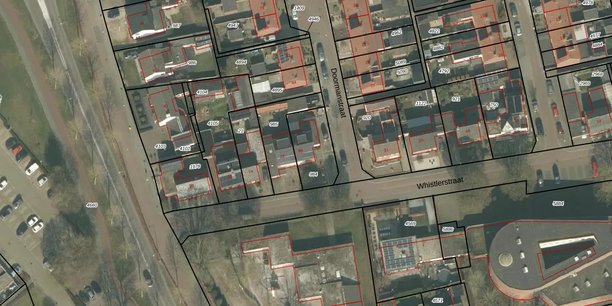 Het perceel waarop Doormanstraat 86 staat heeft een oppervlakte van 325 m². Dit is een groot perceel. De perceeloppervlakte wordt geregistreerd door het Kadaster. Gedetailleerde informatie over de maten van dit perceel kunt u vinden in het rapport Kadastrale kaart met maatvoering van Doormanstraat 86.