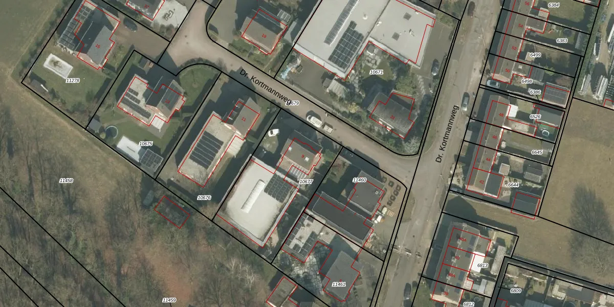Dr. Kortmannweg 9 is gelegen op kadastraal perceel VRY00C10677. Deze kadastrale aanduiding is uniek en wordt gebruikt door het Kadaster om eigendomsrechten en andere zakelijke rechten vast te leggen. Het perceel maakt onderdeel uit van de kadastrale gemeente Venray.