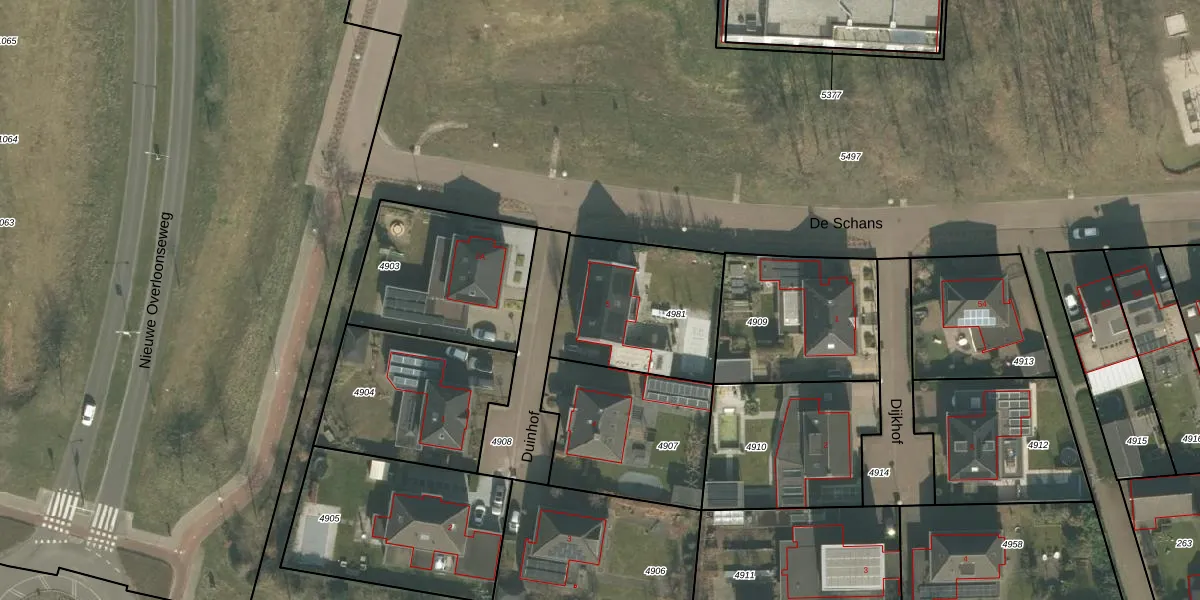 Gebruik de zoekbalk of klik op een perceel voor informatie over de adressen binnen dit perceel.