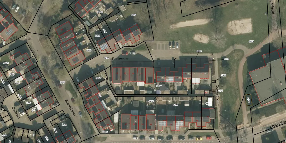 Edelweiss 13 is gelegen op kadastraal perceel VRY00T6107. Deze kadastrale aanduiding is uniek en wordt gebruikt door het Kadaster om eigendomsrechten en andere zakelijke rechten vast te leggen. Het perceel maakt onderdeel uit van de kadastrale gemeente Venray.