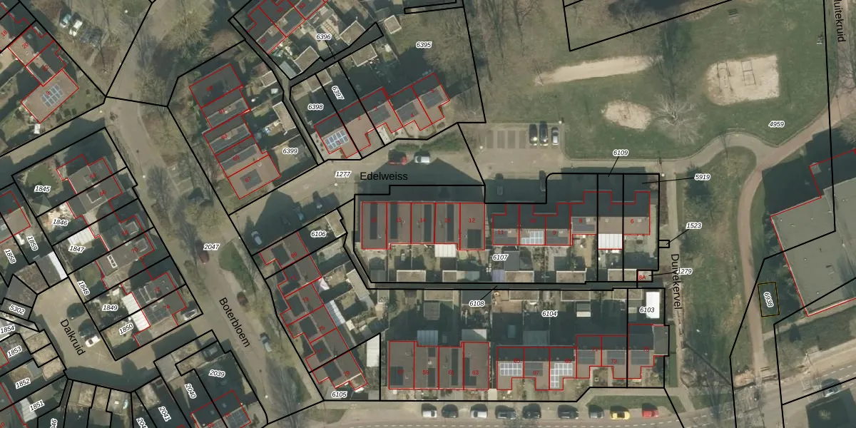 Edelweiss 14 is gelegen op kadastraal perceel VRY00T6107. Deze kadastrale aanduiding is uniek en wordt gebruikt door het Kadaster om eigendomsrechten en andere zakelijke rechten vast te leggen. Het perceel maakt onderdeel uit van de kadastrale gemeente Venray.