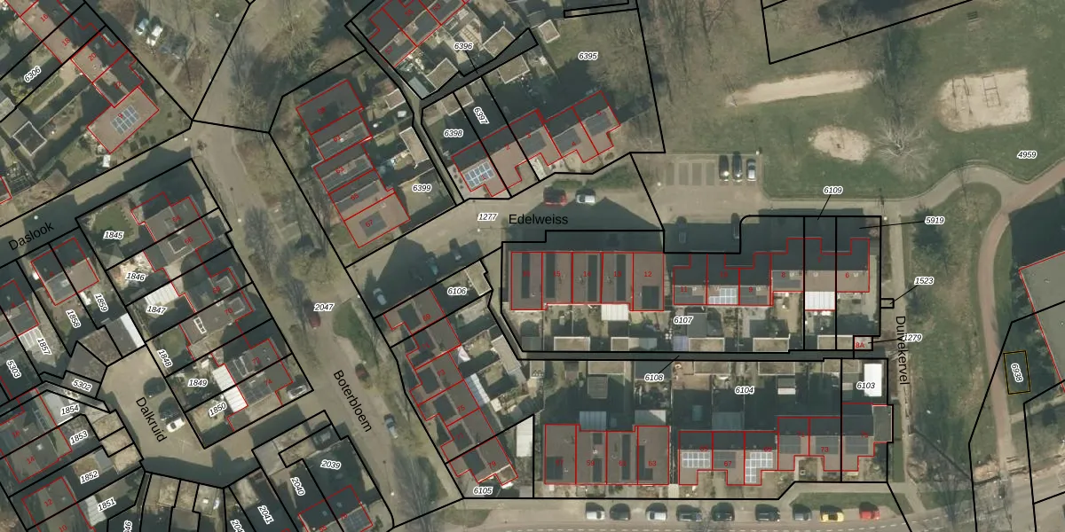 Edelweiss 16 is gelegen op kadastraal perceel VRY00T6107. Deze kadastrale aanduiding is uniek en wordt gebruikt door het Kadaster om eigendomsrechten en andere zakelijke rechten vast te leggen. Het perceel maakt onderdeel uit van de kadastrale gemeente Venray.