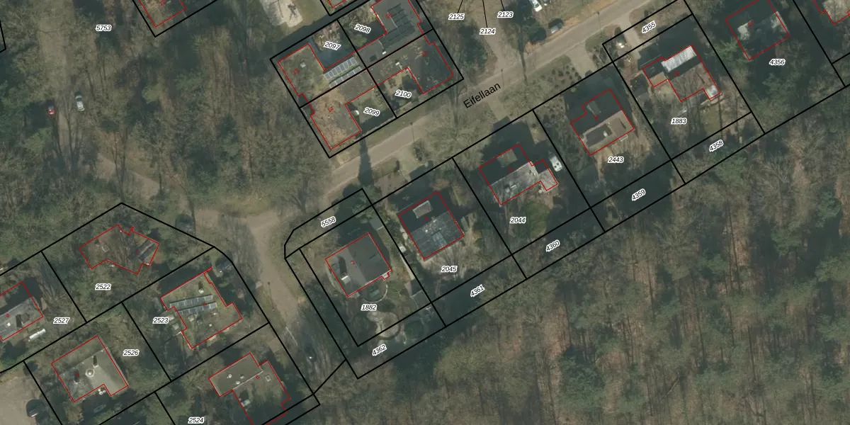 Het perceel waarop Eifellaan 4 staat heeft een oppervlakte van 594 m². Dit is een groot perceel. De perceeloppervlakte wordt geregistreerd door het Kadaster. Gedetailleerde informatie over de maten van dit perceel kunt u vinden in het rapport Kadastrale kaart met maatvoering van Eifellaan 4.
