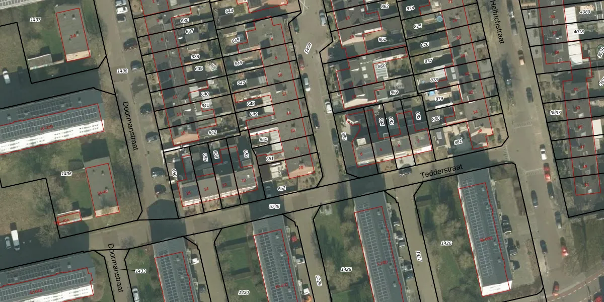 Gebruik de zoekbalk of klik op een perceel voor informatie over de adressen binnen dit perceel.