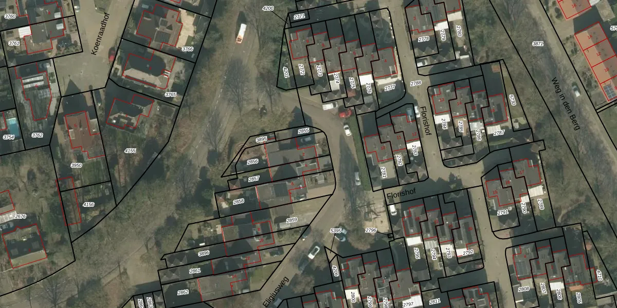 Gebruik de zoekbalk of klik op een perceel voor informatie over de adressen binnen dit perceel.