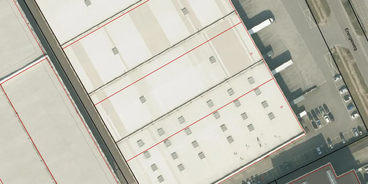 Het perceel waarop Energieweg 14 staat heeft een oppervlakte van 3,1 ha. Dit is een zeer groot perceel. De perceeloppervlakte wordt geregistreerd door het Kadaster. Gedetailleerde informatie over de maten van dit perceel kunt u vinden in het rapport Kadastrale kaart met maatvoering van Energieweg 14.
