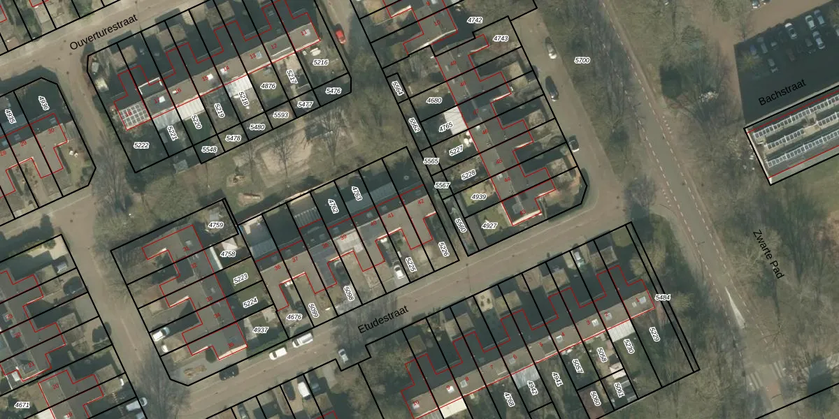 Het perceel waarop Etudestraat 42 staat heeft een oppervlakte van 195 m². Dit is een middelgroot perceel. De perceeloppervlakte wordt geregistreerd door het Kadaster. Gedetailleerde informatie over de maten van dit perceel kunt u vinden in het rapport Kadastrale kaart met maatvoering van Etudestraat 42.