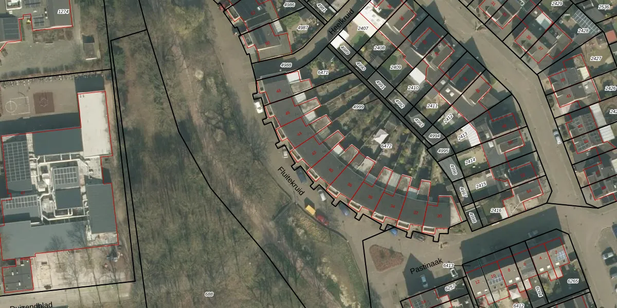 Het perceel waarop Fluitekruid 42 staat heeft een oppervlakte van 1904 m². Dit is een zeer groot perceel. De perceeloppervlakte wordt geregistreerd door het Kadaster. Gedetailleerde informatie over de maten van dit perceel kunt u vinden in het rapport Kadastrale kaart met maatvoering van Fluitekruid 42.