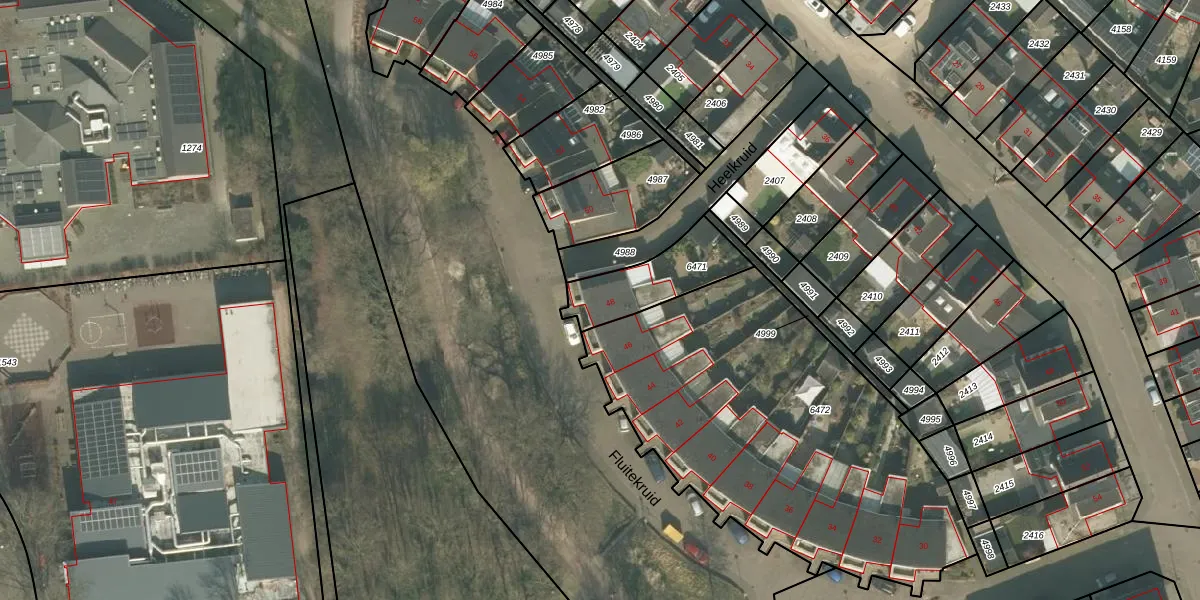 Het perceel waarop Fluitekruid 48 staat heeft een oppervlakte van 245 m². Dit is een middelgroot perceel. De perceeloppervlakte wordt geregistreerd door het Kadaster. Gedetailleerde informatie over de maten van dit perceel kunt u vinden in het rapport Kadastrale kaart met maatvoering van Fluitekruid 48.
