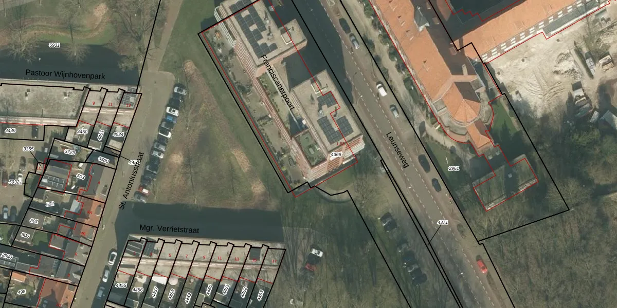 Het perceel waarop het adres ligt is VRY00-L-4369. De afkorting 'VRY00' staat voor kadastrale gemeente Venray. Het perceel is 3250 m² groot. Dat is kleiner dan de gemiddelde perceeloppervlakte in Venray, dat op 6024,75 m² ligt. Het kleinste perceel in de kadastrale gemeente is 0 m² groot. De grootste perceeloppervlakte is 1,79 km². Op het perceel zijn 53 adressen aanwezig. De laatste wijziging in het de Basisregistratie Kadaster (BRK) was op 11-09-2008.