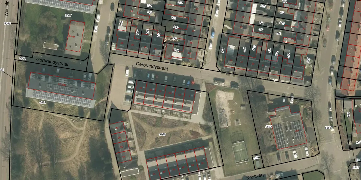 Het perceel waarop Gerbrandystraat 1-A staat heeft een oppervlakte van 2750 m². Dit is een zeer groot perceel. De perceeloppervlakte wordt geregistreerd door het Kadaster. Gedetailleerde informatie over de maten van dit perceel kunt u vinden in het rapport Kadastrale kaart met maatvoering van Gerbrandystraat 1-A.