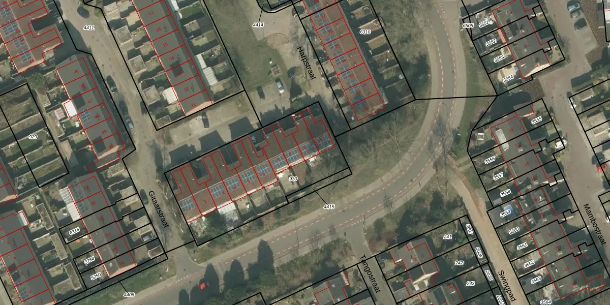 Het perceel waarop Gitaarstraat 9 staat heeft een oppervlakte van 1410 m². Dit is een zeer groot perceel. De perceeloppervlakte wordt geregistreerd door het Kadaster. Gedetailleerde informatie over de maten van dit perceel kunt u vinden in het rapport Kadastrale kaart met maatvoering van Gitaarstraat 9.