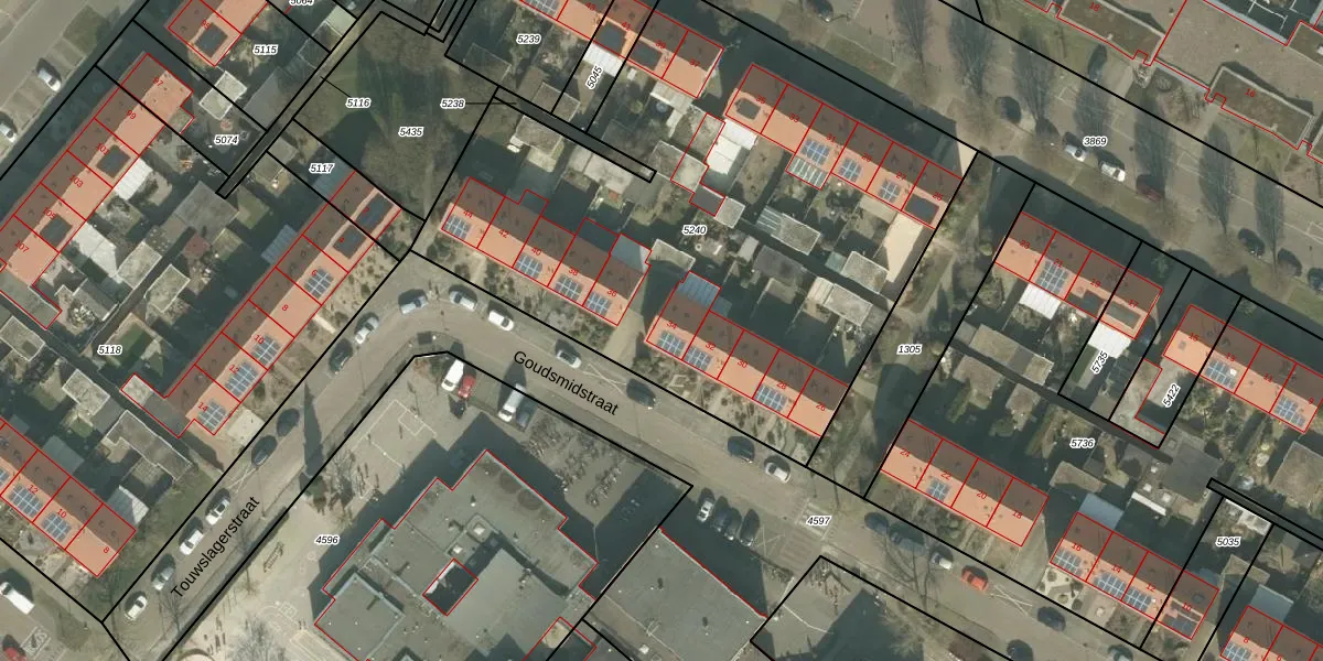 Het perceel waarop Goudsmidstraat 34 staat heeft een oppervlakte van 3278 m². Dit is een zeer groot perceel. De perceeloppervlakte wordt geregistreerd door het Kadaster. Gedetailleerde informatie over de maten van dit perceel kunt u vinden in het rapport Kadastrale kaart met maatvoering van Goudsmidstraat 34.