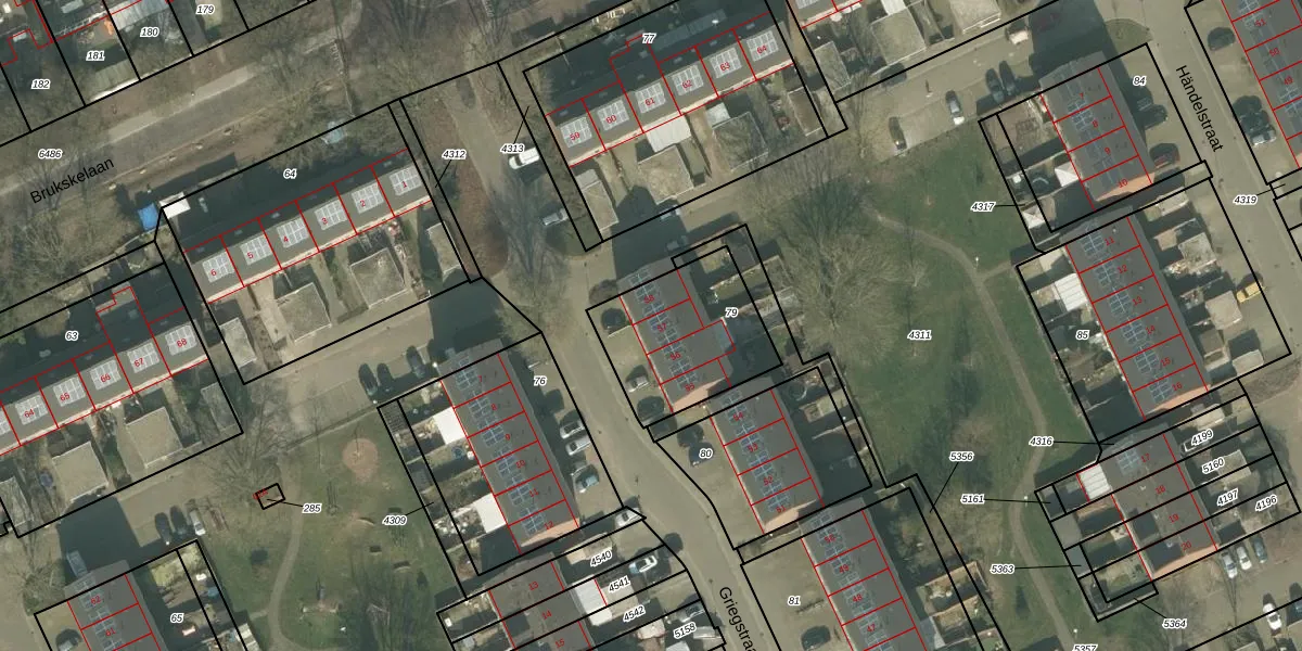 Het perceel waarop Griegstraat 57 staat heeft een oppervlakte van 470 m². Dit is een groot perceel. De perceeloppervlakte wordt geregistreerd door het Kadaster. Gedetailleerde informatie over de maten van dit perceel kunt u vinden in het rapport Kadastrale kaart met maatvoering van Griegstraat 57.