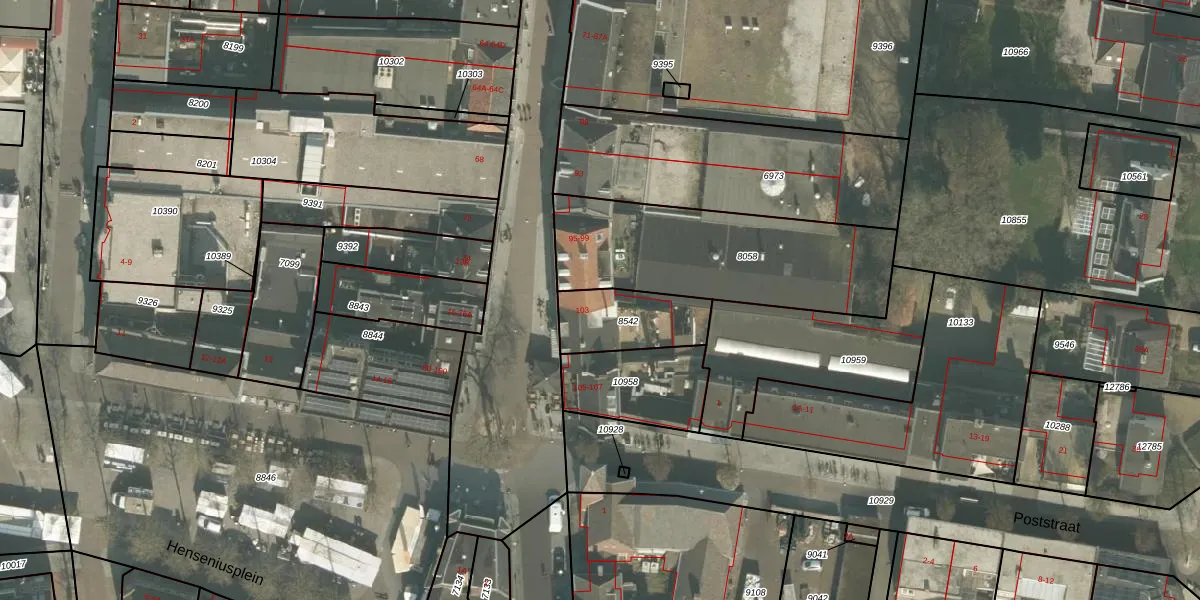 Gebruik de zoekbalk of klik op een perceel voor informatie over de adressen binnen dit perceel.