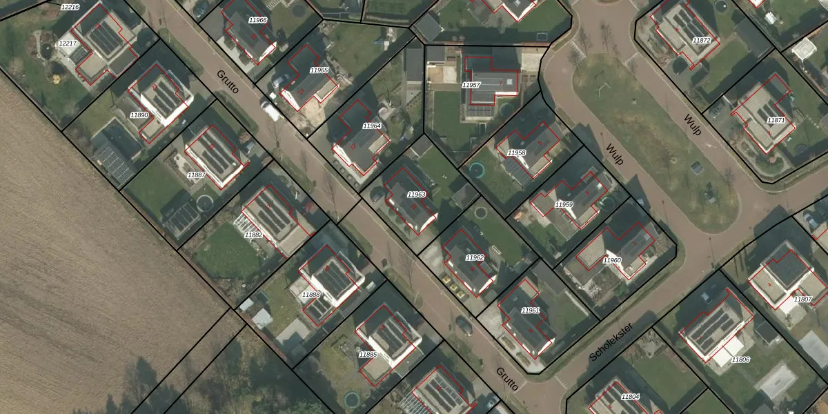 Het perceel waarop Grutto 10 staat heeft een oppervlakte van 436 m². Dit is een groot perceel. De perceeloppervlakte wordt geregistreerd door het Kadaster. Gedetailleerde informatie over de maten van dit perceel kunt u vinden in het rapport Kadastrale kaart met maatvoering van Grutto 10.