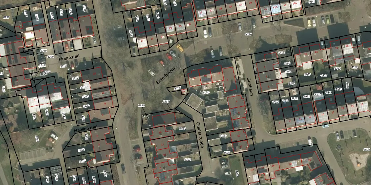 Het perceel waarop Guldenroede 2-A staat heeft een oppervlakte van 34 m². Dit is een klein perceel. De perceeloppervlakte wordt geregistreerd door het Kadaster. Gedetailleerde informatie over de maten van dit perceel kunt u vinden in het rapport Kadastrale kaart met maatvoering van Guldenroede 2-A.