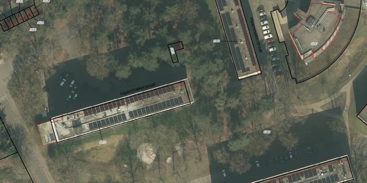 Het perceel waarop Haammakerstraat 18 staat heeft een oppervlakte van 979 m². Dit is een groot perceel. De perceeloppervlakte wordt geregistreerd door het Kadaster. Gedetailleerde informatie over de maten van dit perceel kunt u vinden in het rapport Kadastrale kaart met maatvoering van Haammakerstraat 18.