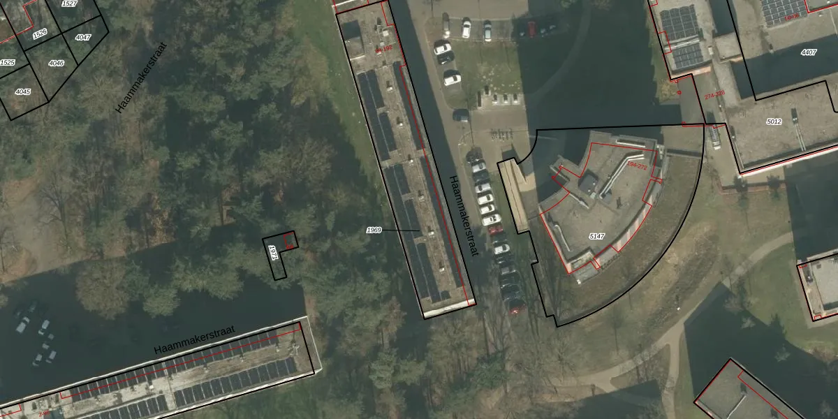 Het perceel waarop Haammakerstraat 182 staat heeft een oppervlakte van 979 m². Dit is een groot perceel. De perceeloppervlakte wordt geregistreerd door het Kadaster. Gedetailleerde informatie over de maten van dit perceel kunt u vinden in het rapport Kadastrale kaart met maatvoering van Haammakerstraat 182.
