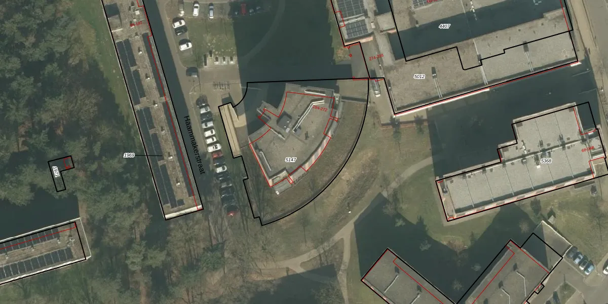 Het perceel waarop Haammakerstraat 214 staat heeft een oppervlakte van 1595 m². Dit is een zeer groot perceel. De perceeloppervlakte wordt geregistreerd door het Kadaster. Gedetailleerde informatie over de maten van dit perceel kunt u vinden in het rapport Kadastrale kaart met maatvoering van Haammakerstraat 214.