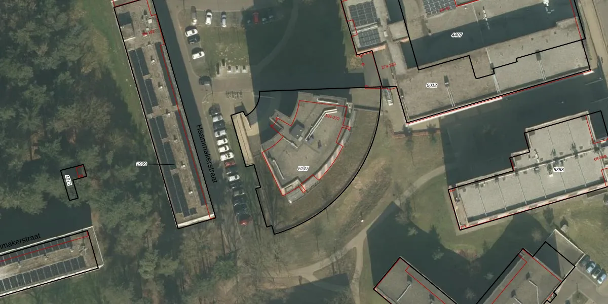 Het perceel waarop Haammakerstraat 262 staat heeft een oppervlakte van 1595 m². Dit is een zeer groot perceel. De perceeloppervlakte wordt geregistreerd door het Kadaster. Gedetailleerde informatie over de maten van dit perceel kunt u vinden in het rapport Kadastrale kaart met maatvoering van Haammakerstraat 262.