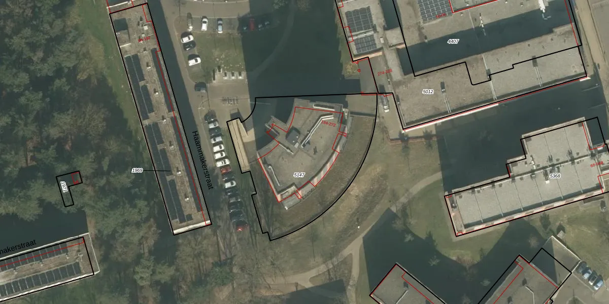 Het perceel waarop Haammakerstraat 264 staat heeft een oppervlakte van 1595 m². Dit is een zeer groot perceel. De perceeloppervlakte wordt geregistreerd door het Kadaster. Gedetailleerde informatie over de maten van dit perceel kunt u vinden in het rapport Kadastrale kaart met maatvoering van Haammakerstraat 264.