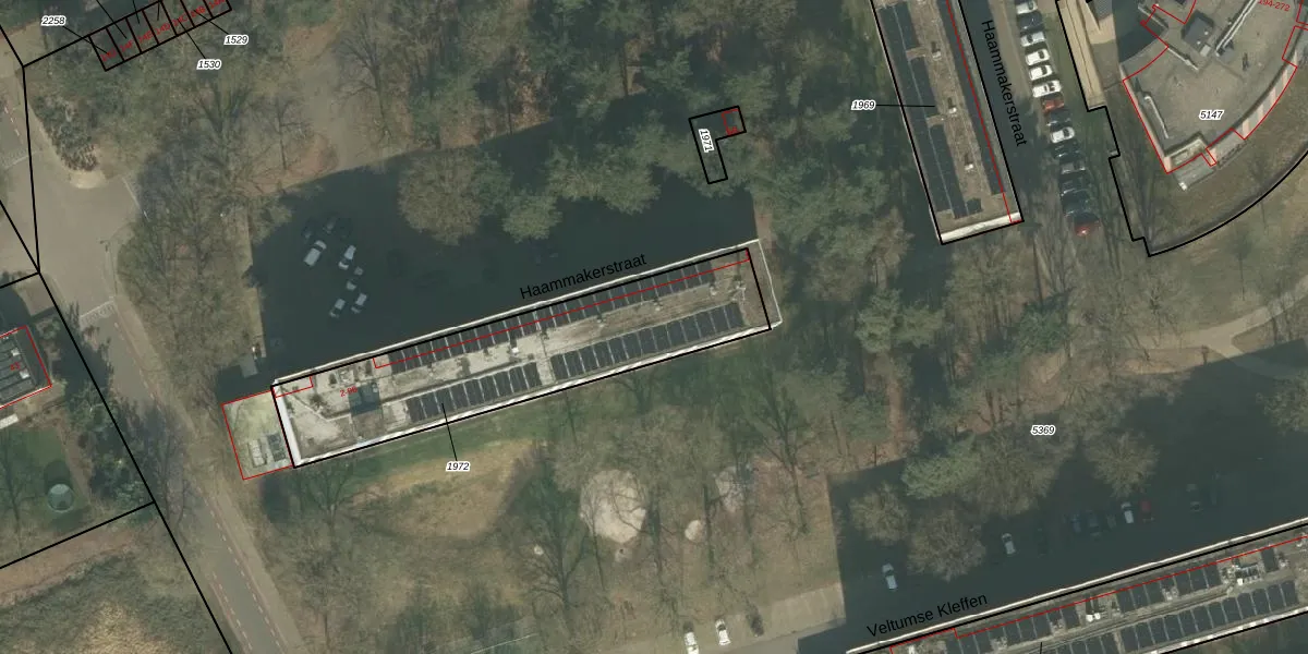 Het perceel waarop Haammakerstraat 42 staat heeft een oppervlakte van 979 m². Dit is een groot perceel. De perceeloppervlakte wordt geregistreerd door het Kadaster. Gedetailleerde informatie over de maten van dit perceel kunt u vinden in het rapport Kadastrale kaart met maatvoering van Haammakerstraat 42.