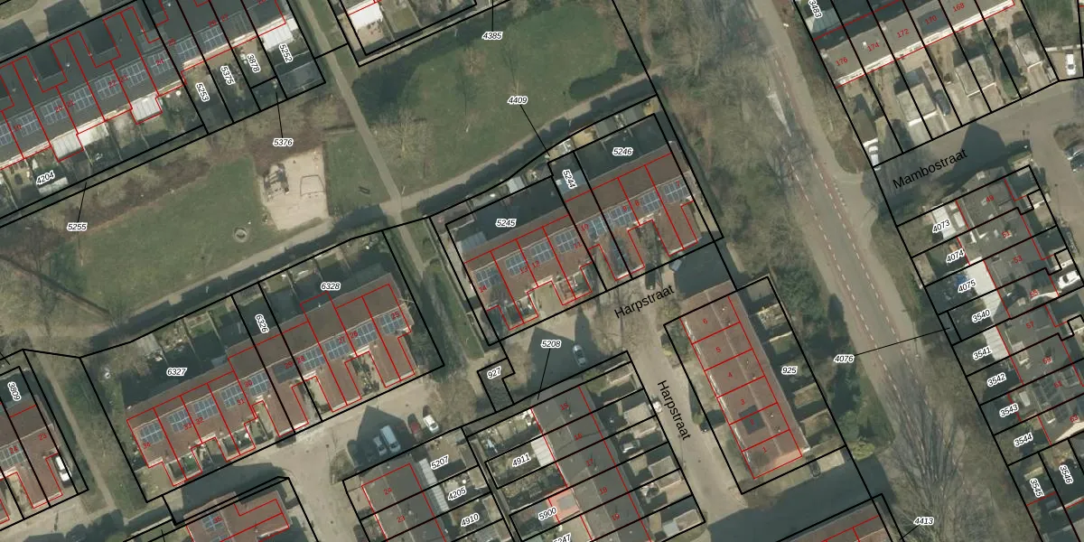 Het perceel waarop Harpstraat 12 staat heeft een oppervlakte van 515 m². Dit is een groot perceel. De perceeloppervlakte wordt geregistreerd door het Kadaster. Gedetailleerde informatie over de maten van dit perceel kunt u vinden in het rapport Kadastrale kaart met maatvoering van Harpstraat 12.