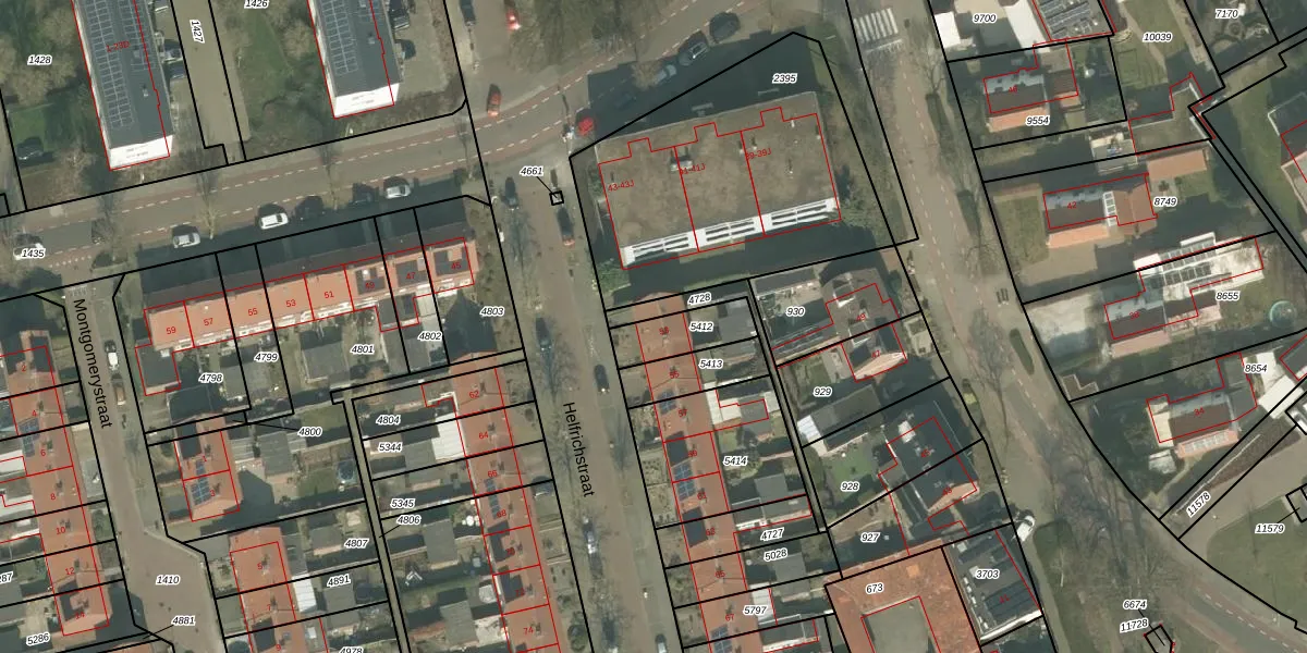 Gebruik de zoekbalk of klik op een perceel voor informatie over de adressen binnen dit perceel.
