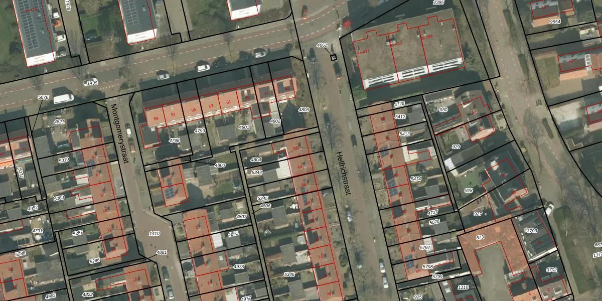 Het perceel waarop Helfrichstraat 62 staat heeft een oppervlakte van 174 m². Dit is een middelgroot perceel. De perceeloppervlakte wordt geregistreerd door het Kadaster. Gedetailleerde informatie over de maten van dit perceel kunt u vinden in het rapport Kadastrale kaart met maatvoering van Helfrichstraat 62.