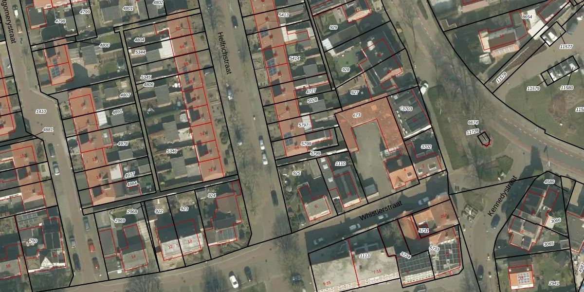 Het perceel waarop Helfrichstraat 69 staat heeft een oppervlakte van 141 m². Dit is een middelgroot perceel. De perceeloppervlakte wordt geregistreerd door het Kadaster. Gedetailleerde informatie over de maten van dit perceel kunt u vinden in het rapport Kadastrale kaart met maatvoering van Helfrichstraat 69.