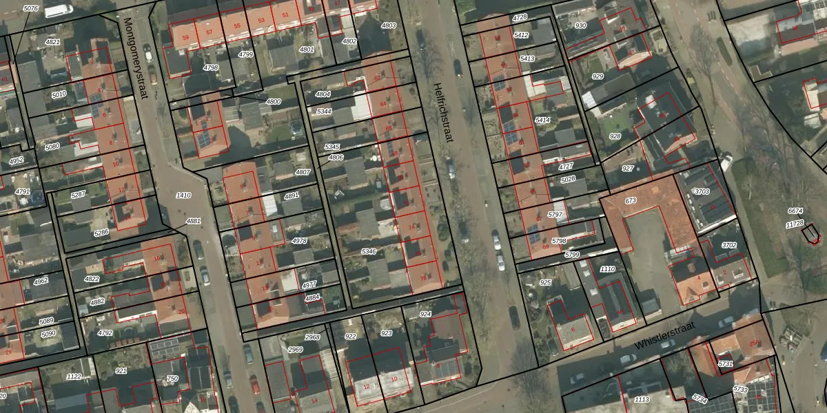 Het perceel waarop Helfrichstraat 72 staat heeft een oppervlakte van 1023 m². Dit is een zeer groot perceel. De perceeloppervlakte wordt geregistreerd door het Kadaster. Gedetailleerde informatie over de maten van dit perceel kunt u vinden in het rapport Kadastrale kaart met maatvoering van Helfrichstraat 72.