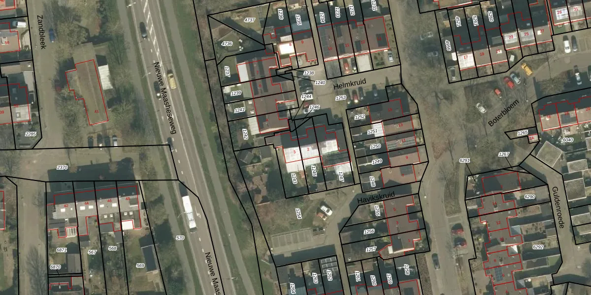 Gebruik de zoekbalk of klik op een perceel voor informatie over de adressen binnen dit perceel.