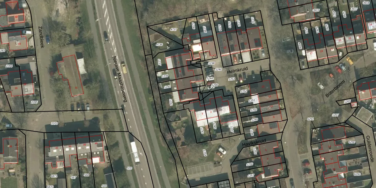 Gebruik de zoekbalk of klik op een perceel voor informatie over de adressen binnen dit perceel.