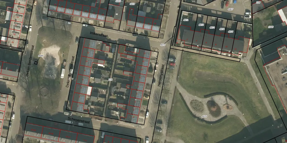 Het perceel waarop Hemonystraat 13 staat heeft een oppervlakte van 2863 m². Dit is een zeer groot perceel. De perceeloppervlakte wordt geregistreerd door het Kadaster. Gedetailleerde informatie over de maten van dit perceel kunt u vinden in het rapport Kadastrale kaart met maatvoering van Hemonystraat 13.